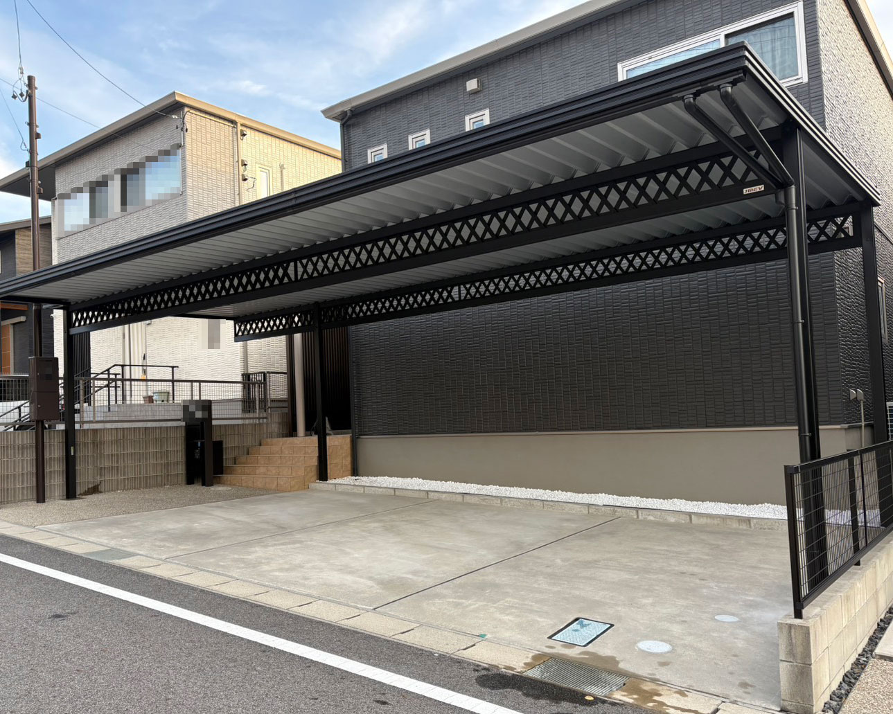 こちら豊田市 M様邸にカーポートを設置させて頂きました。 折板のオーダーカーポートなので、施主様のお好みでサイズを調整してあります。 お好みのサイズや追加施工等も承っております。まずは一度ご相談ください。 ※ 写真は許可を得て掲載しておりますが、プライベート保護の為、施工中のものを優先して掲載していま