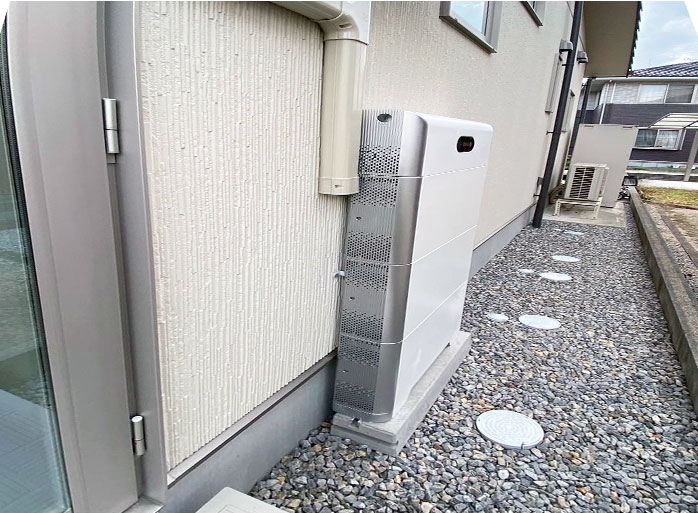 こちら滋賀県のF様宅での蓄電池工事となります。 太陽光パネル、蓄電池を新しく導入して頂きました。 発電効果の高い日中、発電量の見込めない夜間など、さまざまな状況に合わせて適切な 電力管理を行うシステムが導入されています。 是非、一度ご相談ください。 ※ 写真は許可を得て掲載しておりますが、プライベート保護の為、施工中のものを優先して掲載しています。