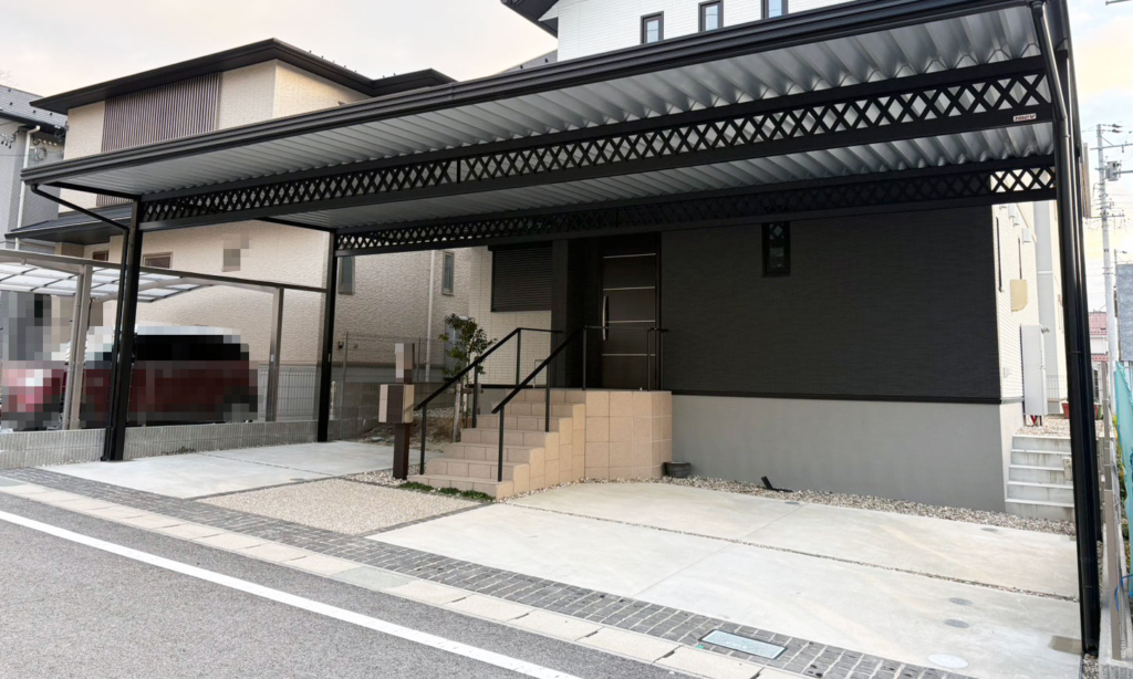 こちら豊田市 Y様邸にカーポートを設置させて頂きました。 建物との間を無くすようにして、雨にぬれず車に乗降りできます。 お買い物帰りでも雨に濡れません。 カーポートの屋根も写真のように雨樋を避けるよう加工してあります。 特殊加工や、こうしてみたい、というリクエストは大歓迎。 是非、遠慮なくご相談ください。 ※ 写真は許可を得て掲載しておりますが、プライベート保護の為、施工中のものを優先して掲載していま
