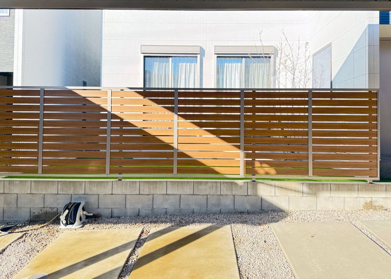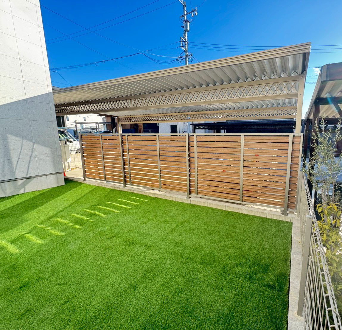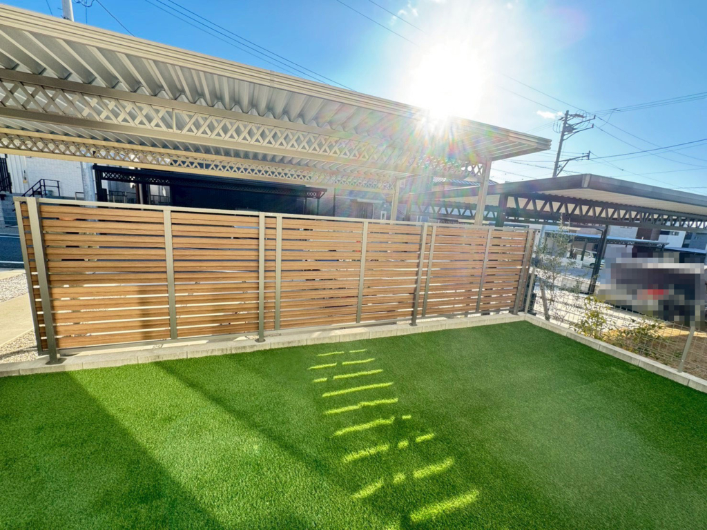 こちら豊田市のA様宅で、カーポート施工と合わせて人工芝、目隠しフェンス、玄関周りの施工もさせて頂きました。 あざやかな緑があると、それだけで雰囲気が変わります。 施工の際に、防草シートを貼っていますので、雑草などが生えてくる心配もありません。 目隠しフェンスの施工で道路側からの見られる事もないので、プライベート保護も万全です。 庭まわり、フェンス、塀などの施工も遠慮なくご相談ください。 ※ 写真は許可を得て掲載しておりますが、プライベート保護の為、施工中のものを優先して掲載しています。